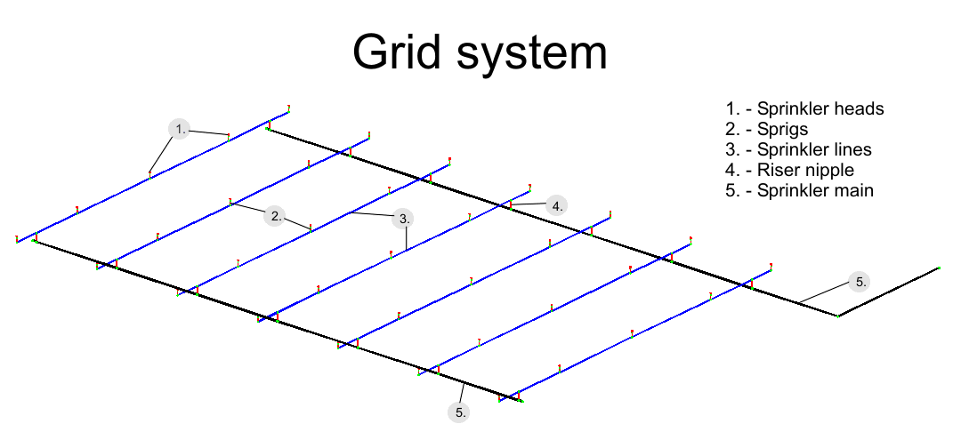 are the most common systems used in current days. It requires a permanent water supply, based on the Building Code, requires a back flow preventer (double check valve assembly), a shut off valve, an alarm device (could be an alarm valve or a riser check valve) and then the pipe system completed with additional alarm devices if necessary, depending on the complexity of the system. Those are only the basic components of a wet sprinkler system. The more complex the protected building is, the more complicated the sprinkler system is. The pipe ramification can also be classified in three big categories:
